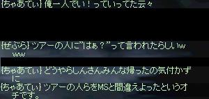 先行PTをMSめんと間違って一人果敢につっこみ、見ず知らずの超赤の他人のWIZ様に「い」とのたまった巨匠。WIZ様に「はw?」と言われてちょっと恥ずかしかったぽい。